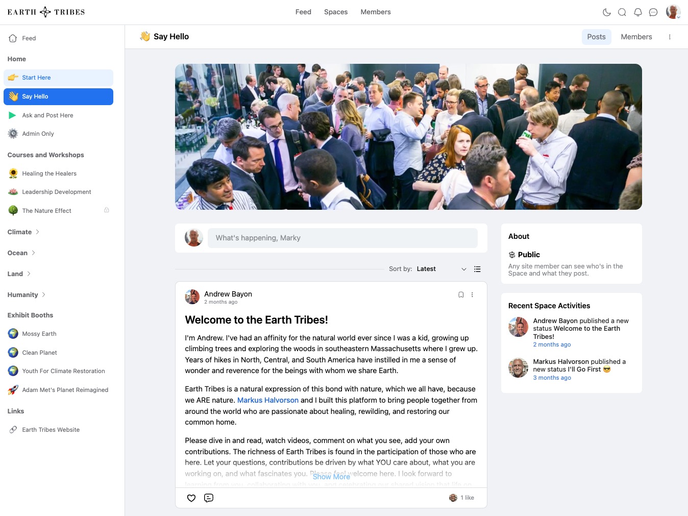 Our community environment is hosted by Earth Tribes. This allows us to share curated content with no ads, no algorithms, and no annoying notifications.